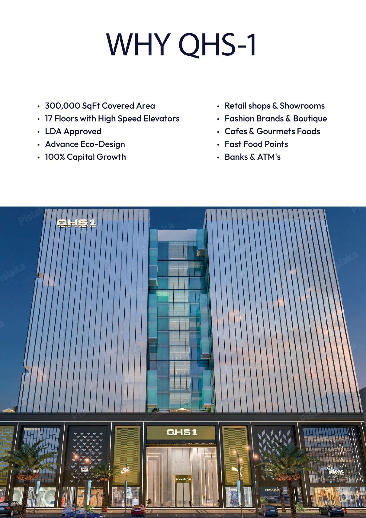 QHS-1 (Q High Street 1) is a modern commercial development in Lahore, designed to offer retail shops and business spaces in a high-footfall location. With contemporary architecture, easy accessibility, and investor-friendly planning, the project aims to serve as a vibrant commercial hub for brands, retailers, and entrepreneurs.