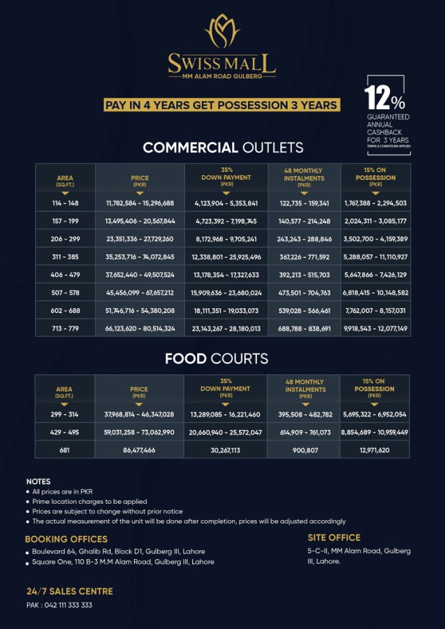 With its contemporary design, premium offerings, and partnership with a global hospitality brand, Swiss Mall Gulberg is attracting keen interest from serious investors. It combines the prestige of owning real estate in Lahore’s top commercial zone with the security of an authority-approved, professionally managed project.