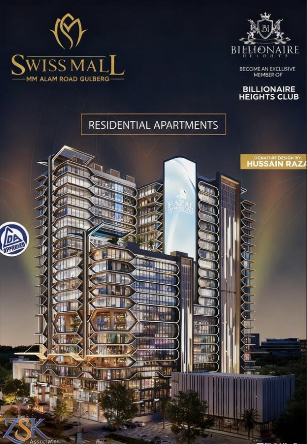 For those seeking upscale city living, Swiss Mall Gulberg offers studio, 1 and 2 bed residential apartments designed with comfort, privacy, and modern aesthetics in mind. Owning an apartment in Swiss Mall Gulberg comes with far more than just a prestigious address — it opens the doors to the elite Billionaire Heights Club. As a member, residents enter a world of exclusivity, where exceptional lifestyle privileges await them. From a fully equipped gym to a relaxing sauna, pool room, and state-of-the-art swimming pool, every facility has been designed to create an unmatched living experience. Whether for personal use or rental income, the apartments offer a prime opportunity to enjoy a cosmopolitan lifestyle in one of Lahore’s most desirable neighborhoods.