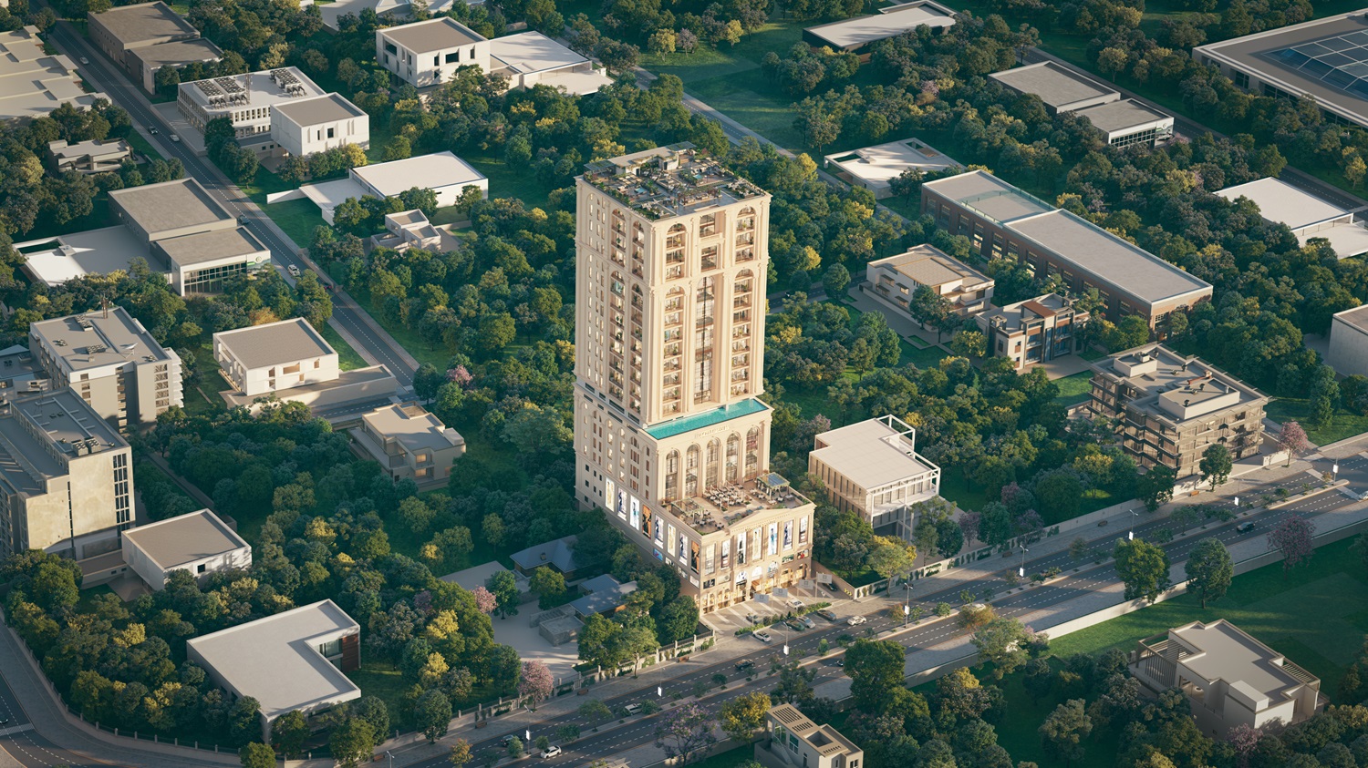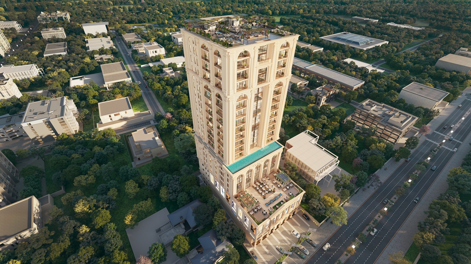 Meanwhile, the higher floors of the building will house fully automated hotel suites that will serve as a vibrant oasis for its residents, inspiring tranquillity and creativity. The visually distinguished project also encompasses an infinity pool, a 300-feet-high rooftop restaurant offering panoramic views of the city, and much more.